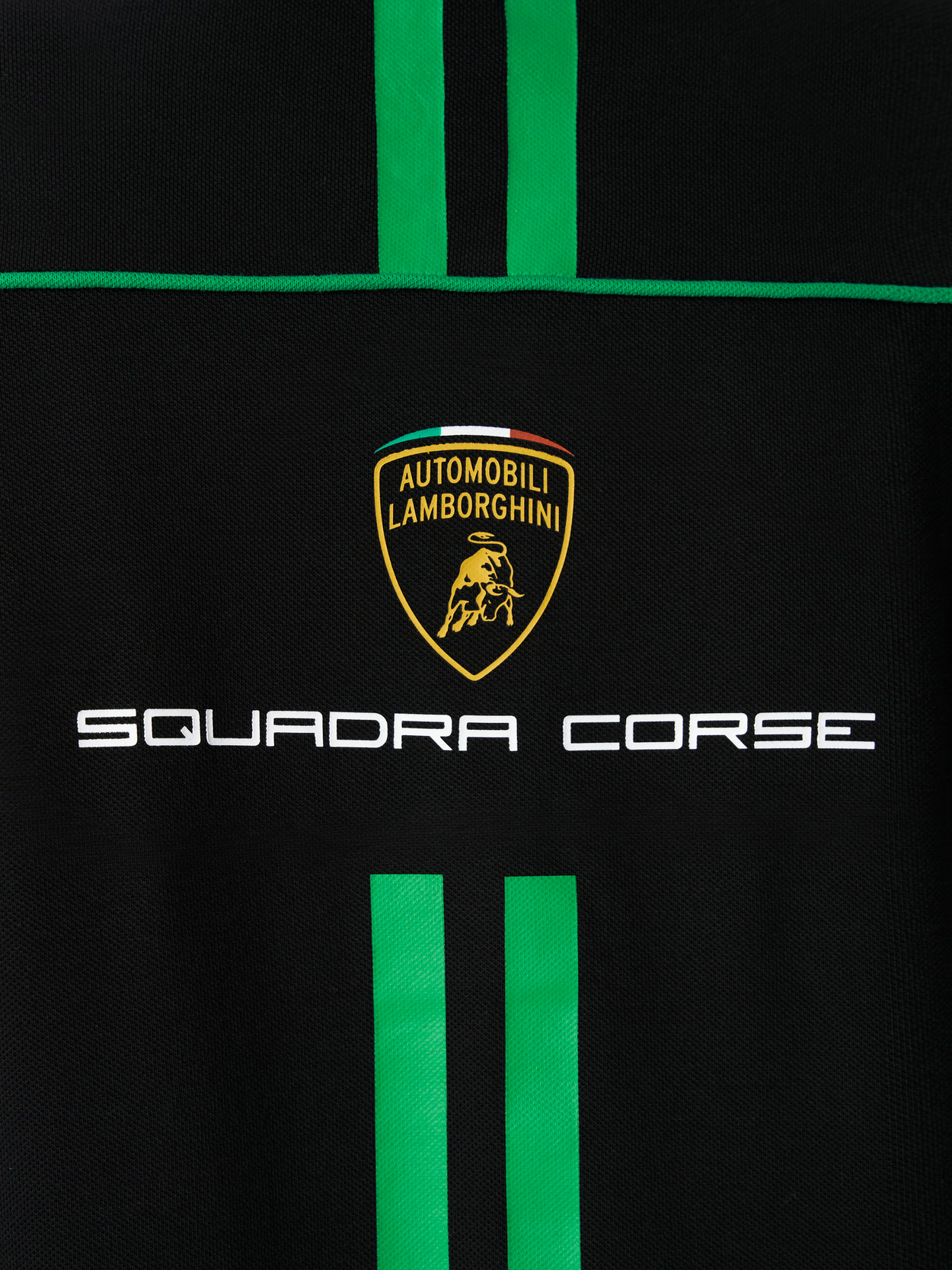 The Automobili Lamborghini Squadra Corse polo shirt for women features the colours and the official sponsors of the Racing Team from Sant’Agata Bolognese.