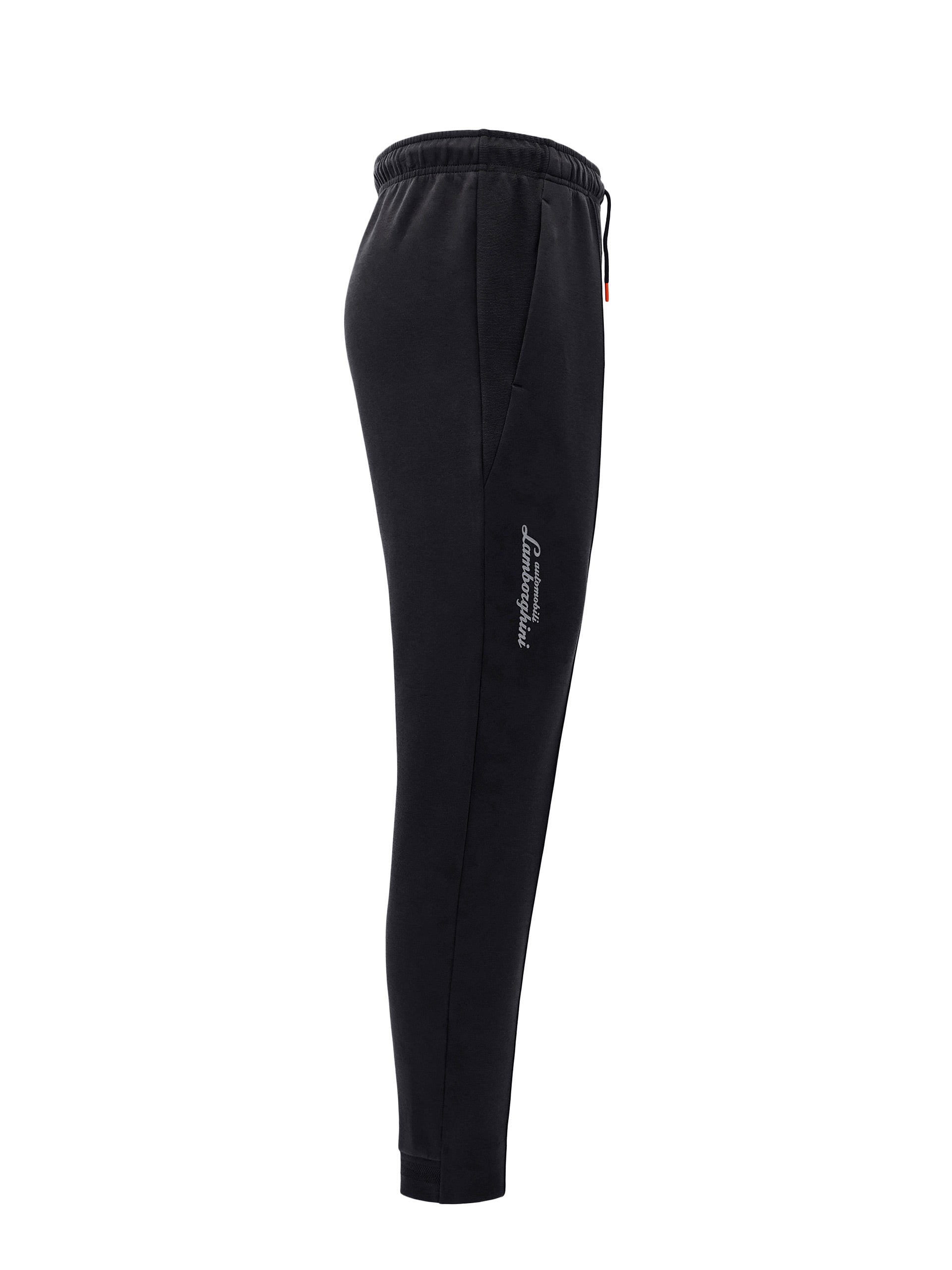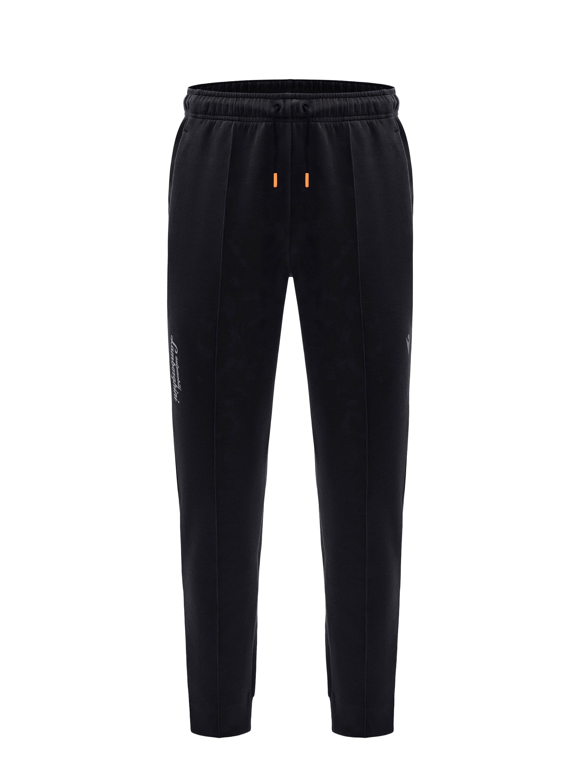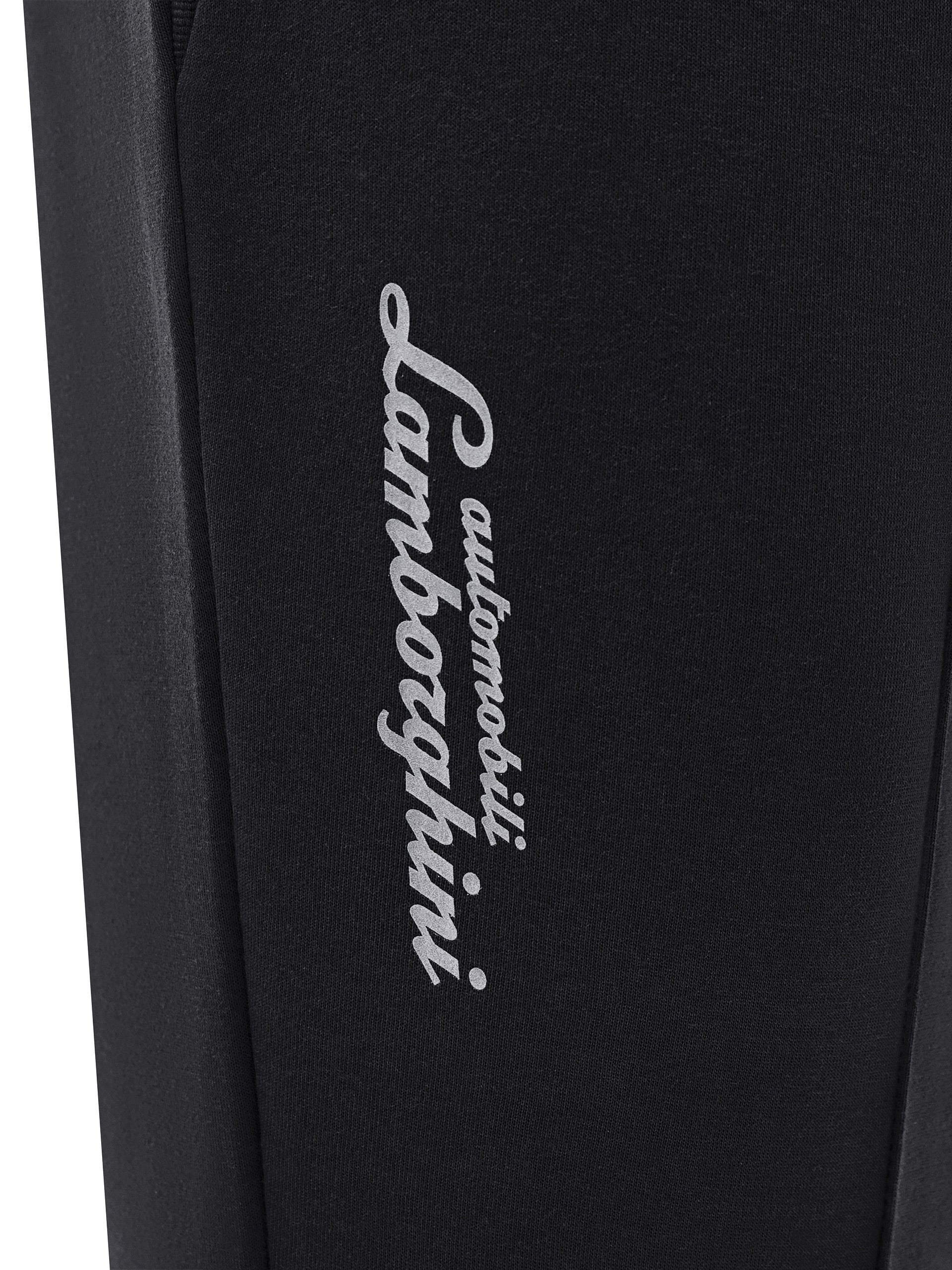 Die Sporthosen für Herren sind aus einem bequemen und dehnbaren Material gefertigt, das maximalen Komfort bietet. Sie verfügen über zwei praktische Taschen mit Reißverschlüssen und Silikonzügen, um Ihre persönlichen Gegenstände sicher zu verwahren. Das gerade Beinende ist mit einem Jacquard-Rippeinsatz auf der Rückseite verziert, der einen eleganten Kontrast und zusätzlichen Komfort bietet. Ein zusätzlicher Stilakzent wird durch den zweifarbigen Kordelzug geboten, der eine anpassbare Passform gewährleistet. Das Automobili Lamborghini-Logo ist auf dem rechten Bein positioniert.