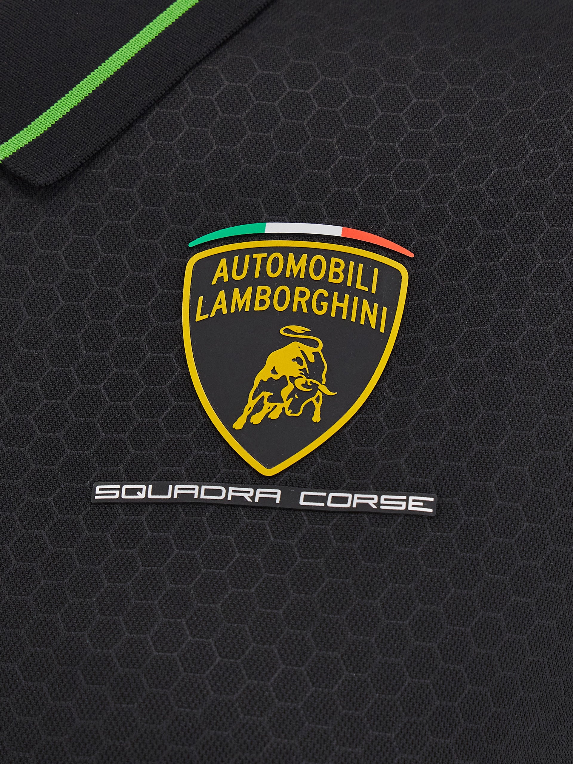 Characterized by an embossed texture and Micromesh inserts in the back that enhance freshness and continuous breathability. The Automobili Lamborghini Squadra Corse logo is applied on the left front. Further embellished by the colors and the official sponsors of the Racing Team.
