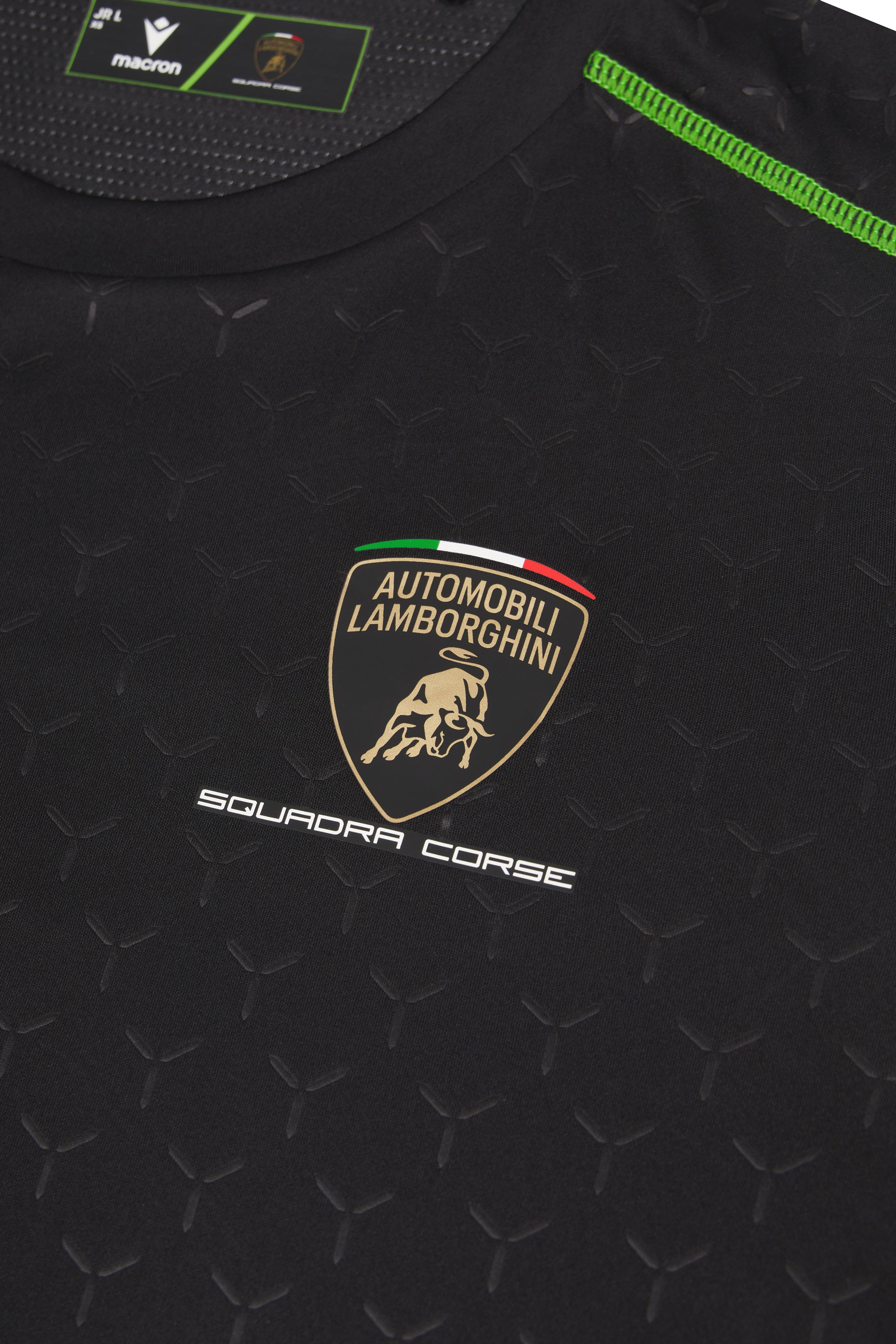 The kids’ t-shirt is made of Zephiro fabric and features an embossed texture that enhances the garment’s design with a sporty, distinctive look. On the back, laser-cut holes promote optimal breathability during activity and everyday wear, helping to maintain a constant feeling of freshness. The crew neck is completed with an internal sweatband tape, designed to ensure comfort and practicality even in dynamic situations. The Automobili Lamborghini logo is positioned on the left front. Further enhanced by the official Racing Team colours and sponsors.
