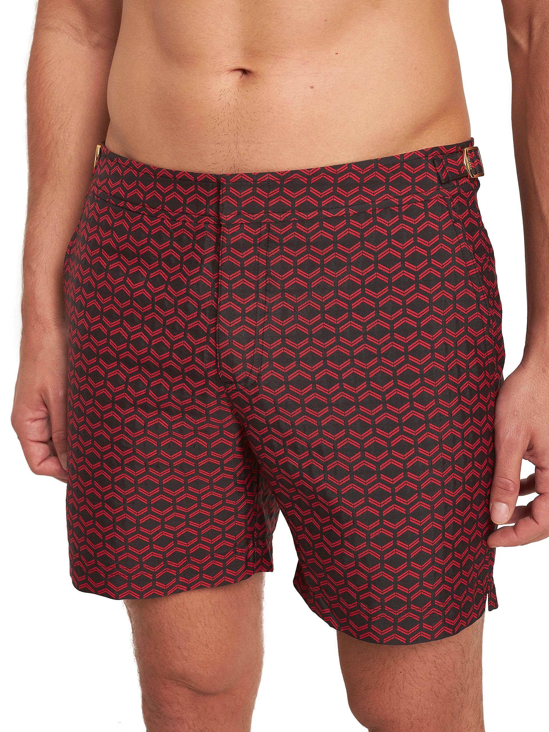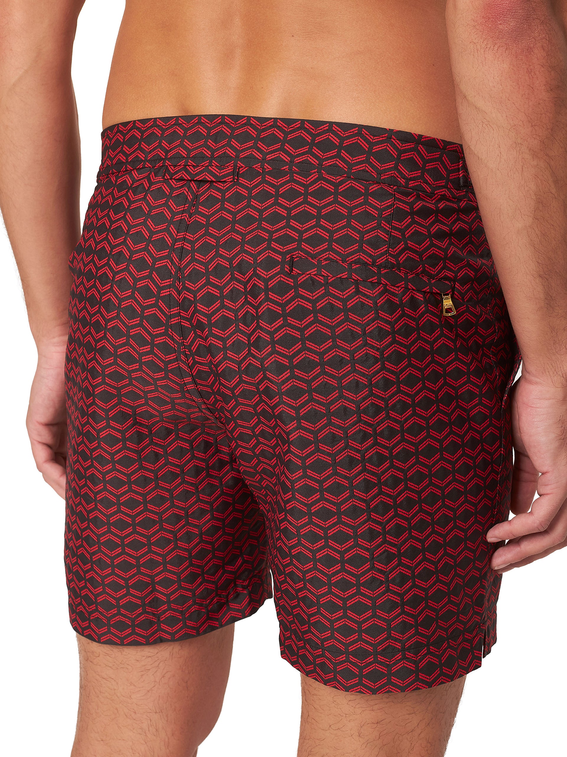 These tailored Bulldog swim shorts feature a striking hexagonal print which takes inspiration from the stylistic element that has characterised Lamborghini design since the very beginning. Enjoy the perfect fit whenever the beach calls, thanks to our elegant gold-effect, dual-branded side fasteners.