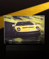 Each line was designed by Mitja Borkert, Design Director of Automobili Lamborghini, and his Centro Stile team on high-quality aluminum plates, creating an exclusive display item. Buy your calendar now! One of 63 pieces in this limited edition. A timeless collection of sketches of the most iconic cars: where the brand's vision begins and its design DNA flows.