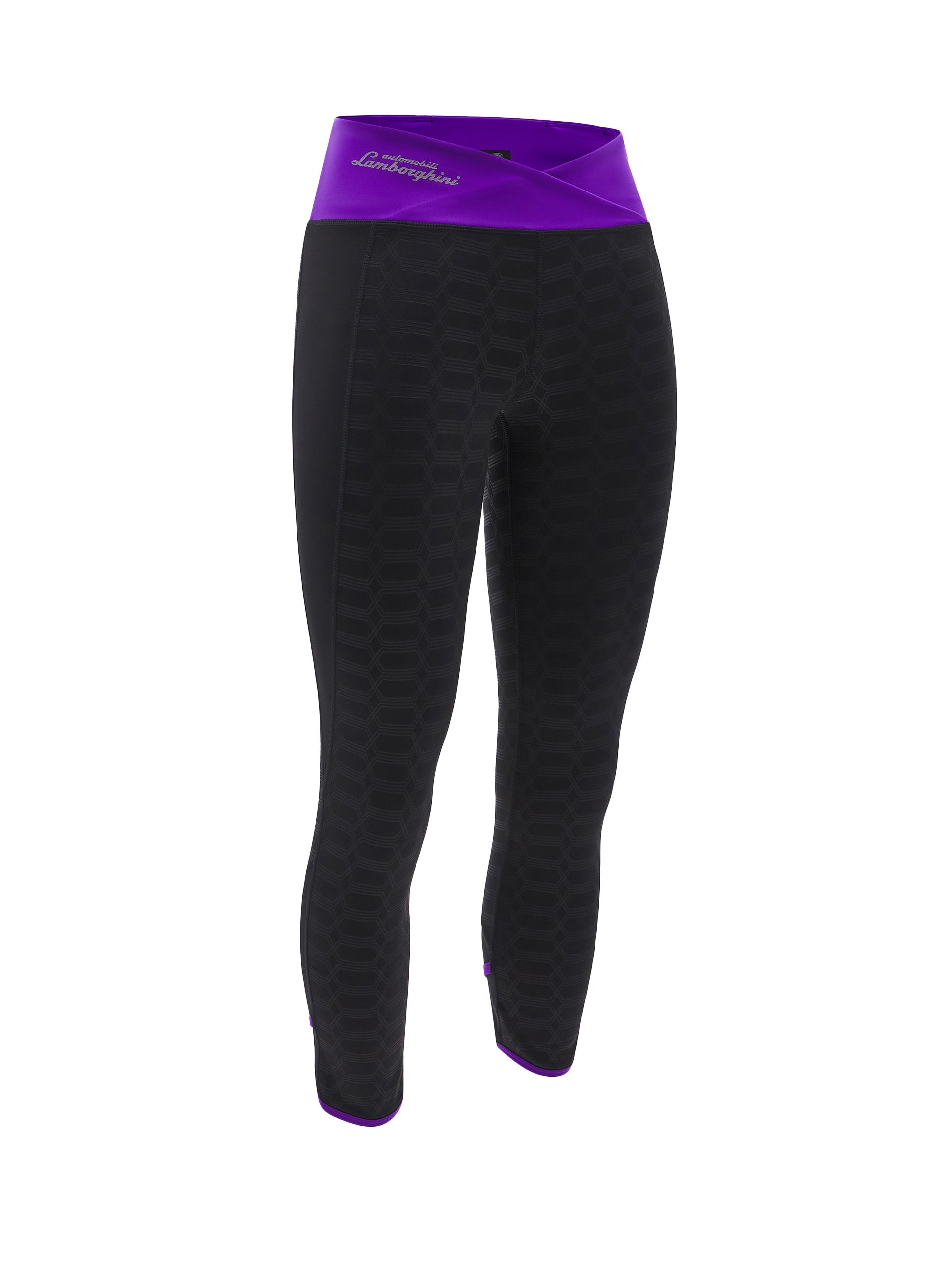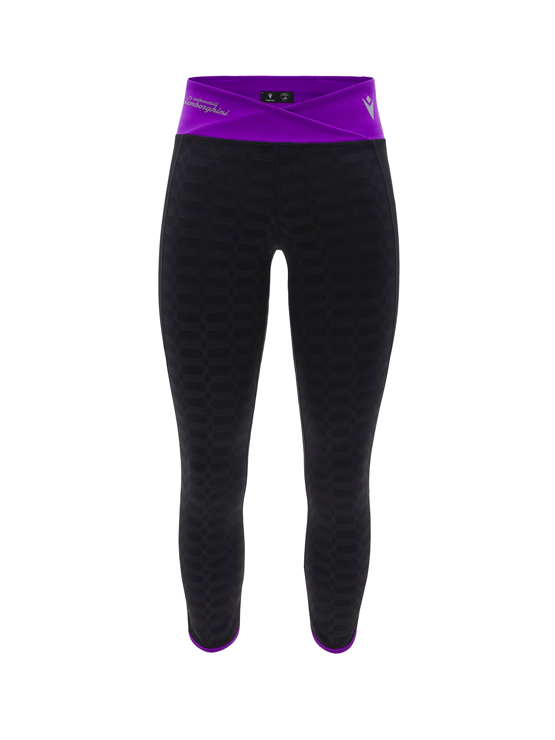 Designed to be a second skin, the women's leggings are essential for those who seek the right balance between comfort and style. The light and comfortable fabric they are made of adapts to the body, allowing the right freedom of movement. Equipped with a crossed Lycra waistband, they feature an internal pocket on the front side. The design offers depth and a refined texture, creating a look that captures attention. The side inserts in the main fabric accentuate the natural shape of the body. Pair them with the upper pieces of the rest of the collection to discover their versatility at every moment of your leisure time! Automibili Lamborghini lettering is positioned on the right side.