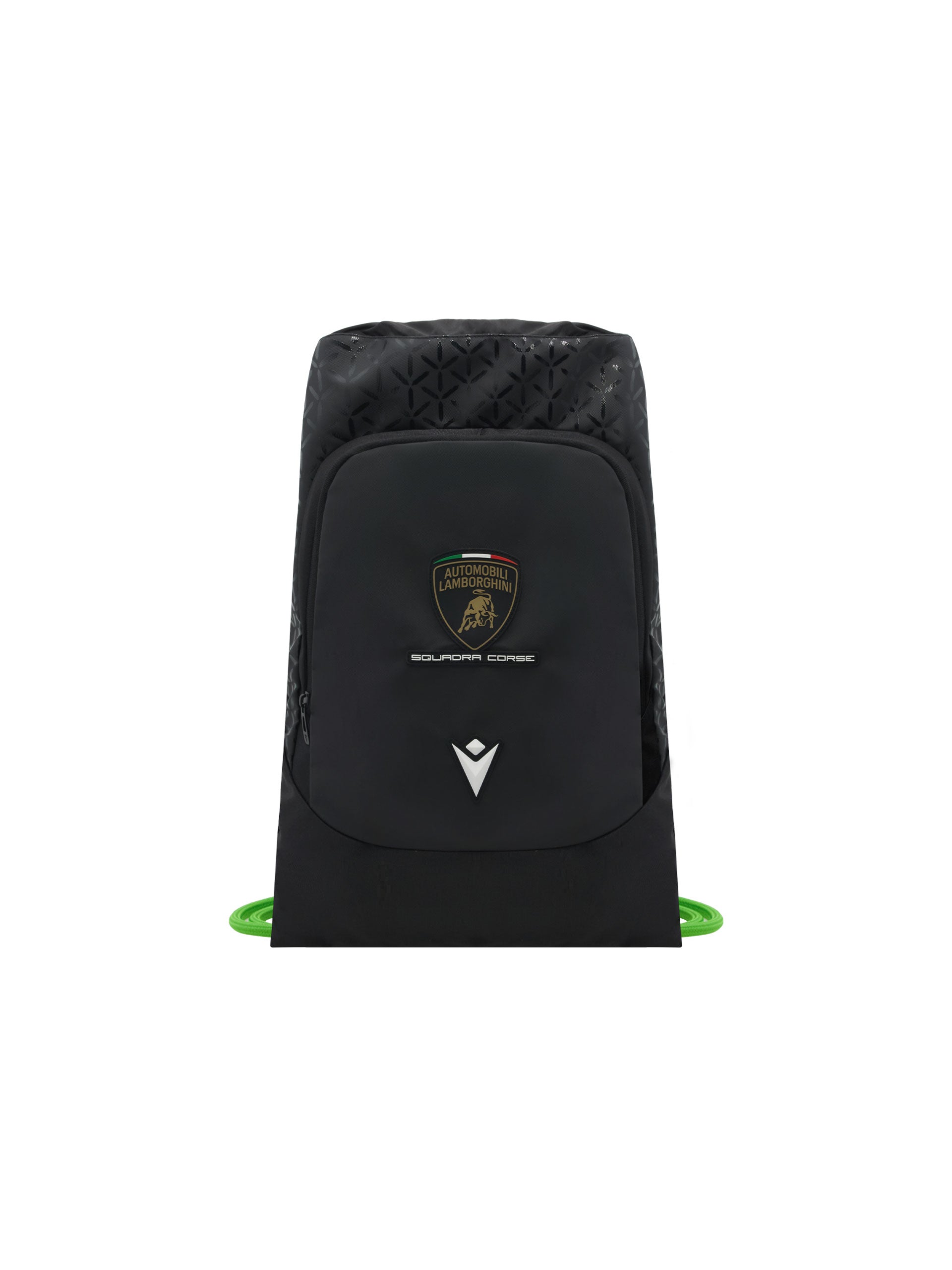 Its minimalist, functional design is characterised by a waterproof front pocket for storing all your essentials, plus a small top pocket at the side with zip fastening. The double drawstring allows easy adjustment and makes it easy to sling over your shoulders. Alternatively, use the sack to carry your gym shoes inside your holdall. It is designed with comfort and practicality in mind. Made in the official Racing Team colours, it features the Automobili Lamborghini Squadra Corse logo on the front.