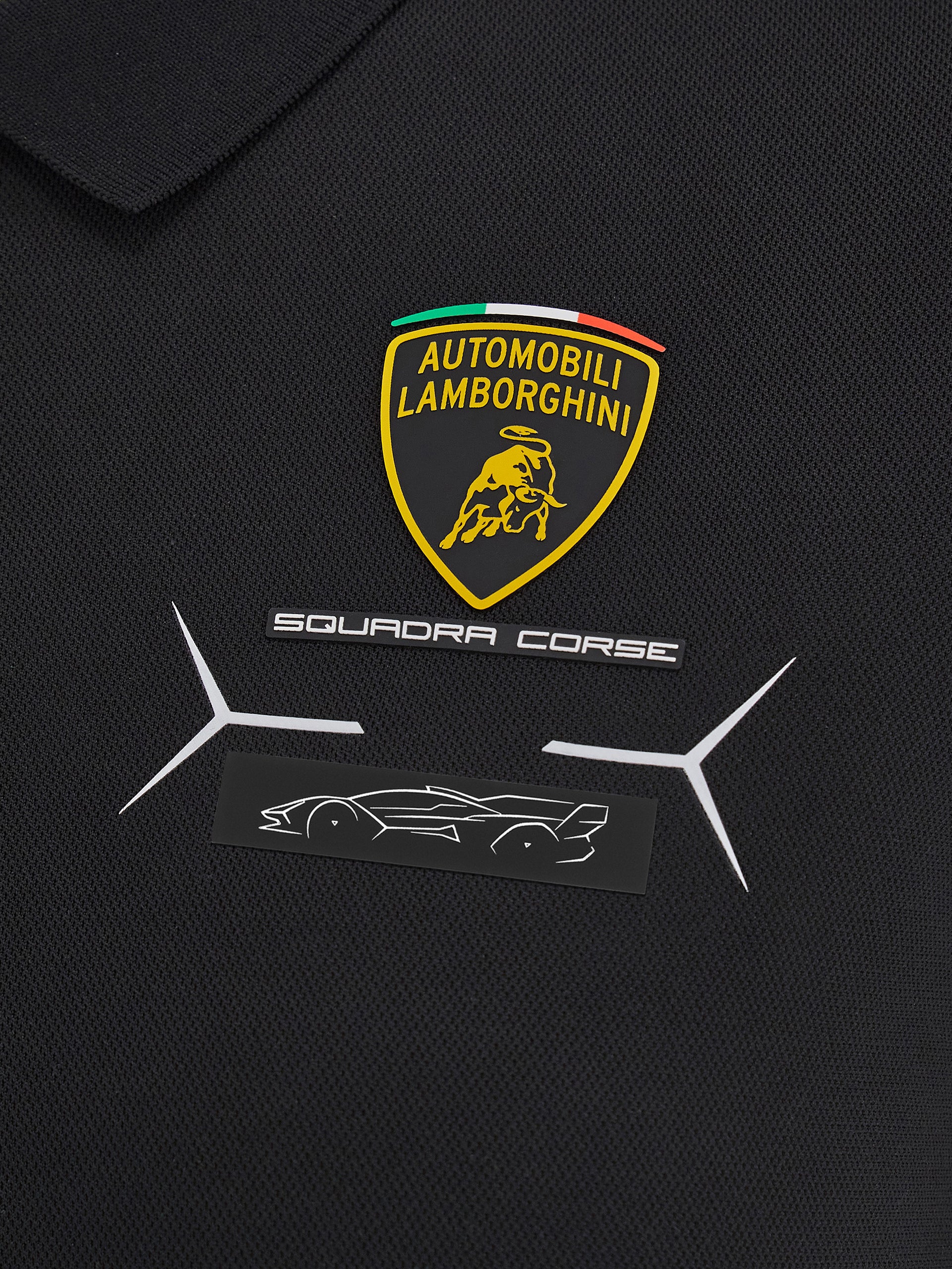 Characterized by an embossed texture and Micromesh inserts in the back that enhance freshness and continuous breathability. The Automobili Lamborghini Squadra Corse logo is applied on the left front. Further embellished by the colors and the official sponsors of the Racing Team.