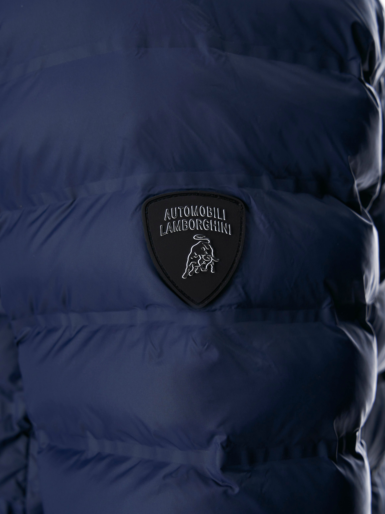 Automobili Lamborghini Iconic Padded Jacket with recycled wadding and heat-sealed seams. Two side pockets, customised with a rubberised shield logo on the sleeve. Regular fit. Main fabric composition: 100% nylon. Lining: 100% polyester. Padding: 100% recycled polyester.